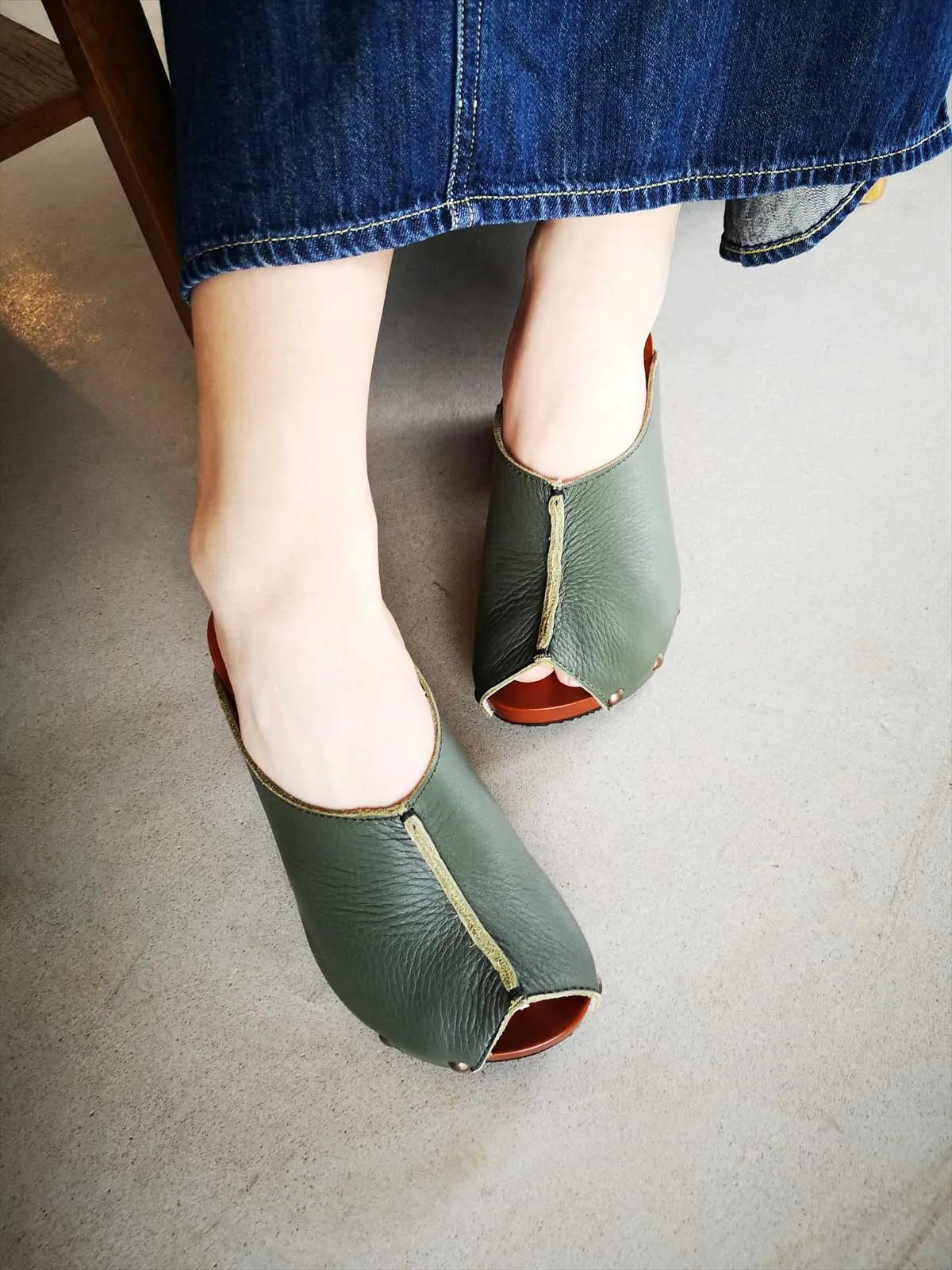 COLOR GETA スムース革 オリーブ / RINK-003