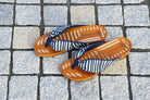風呂敷の「むす美」とm2(えむに)コラボした下駄。 伊砂文様は和洋問わずコーディネイトを楽しめます。