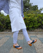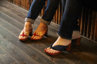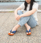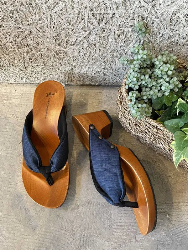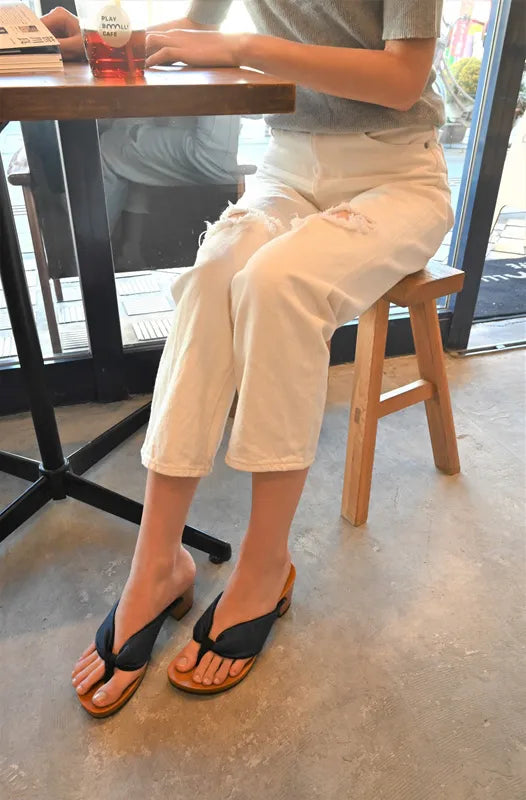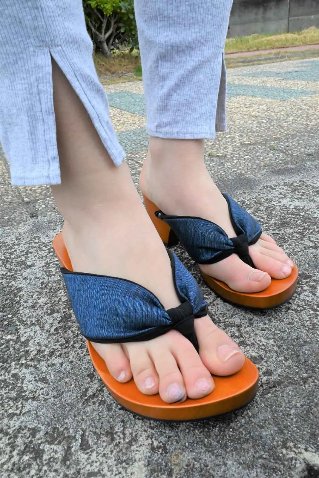 足裏にフィットする様に滑らかに 削った木地と、クッション材入りの鼻緒が特徴。