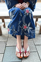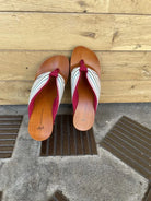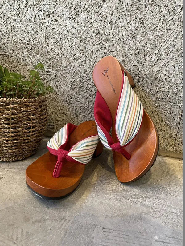足裏にフィットする様に滑らかに削った木地と、クッション材入りの鼻緒が特徴。