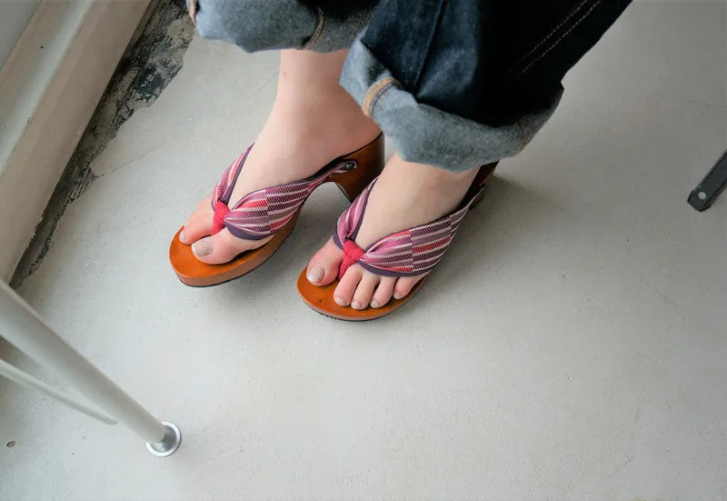 甲州織「槙田商店」とm2(えむに)コラボ。 高級傘生地を鼻緒に採用しました。