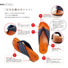 足裏にフィットする様に滑らかに削った木地と、クッション材入りの鼻緒が特徴。