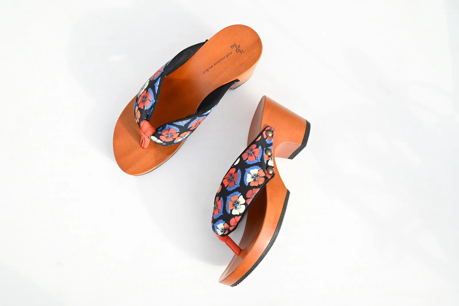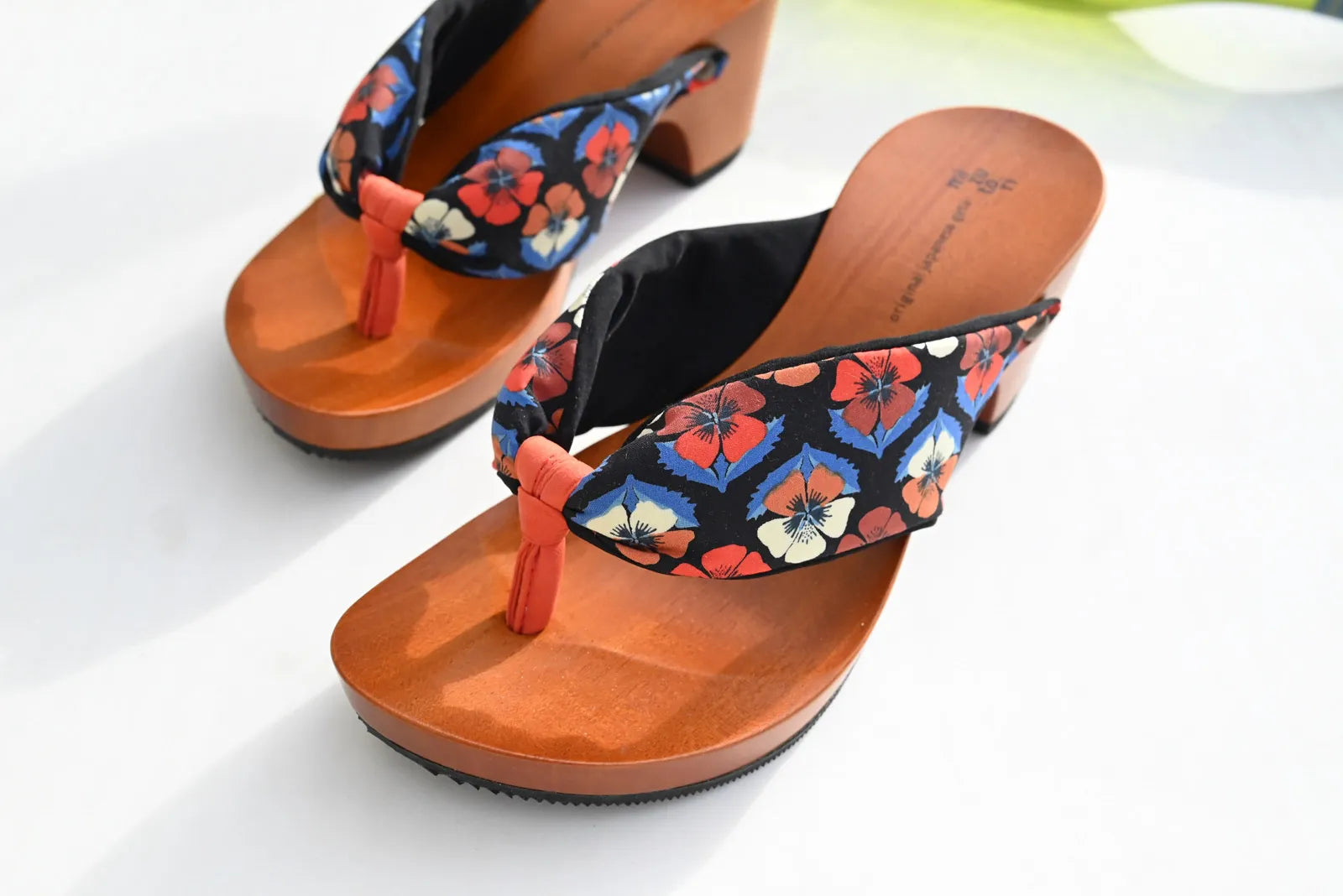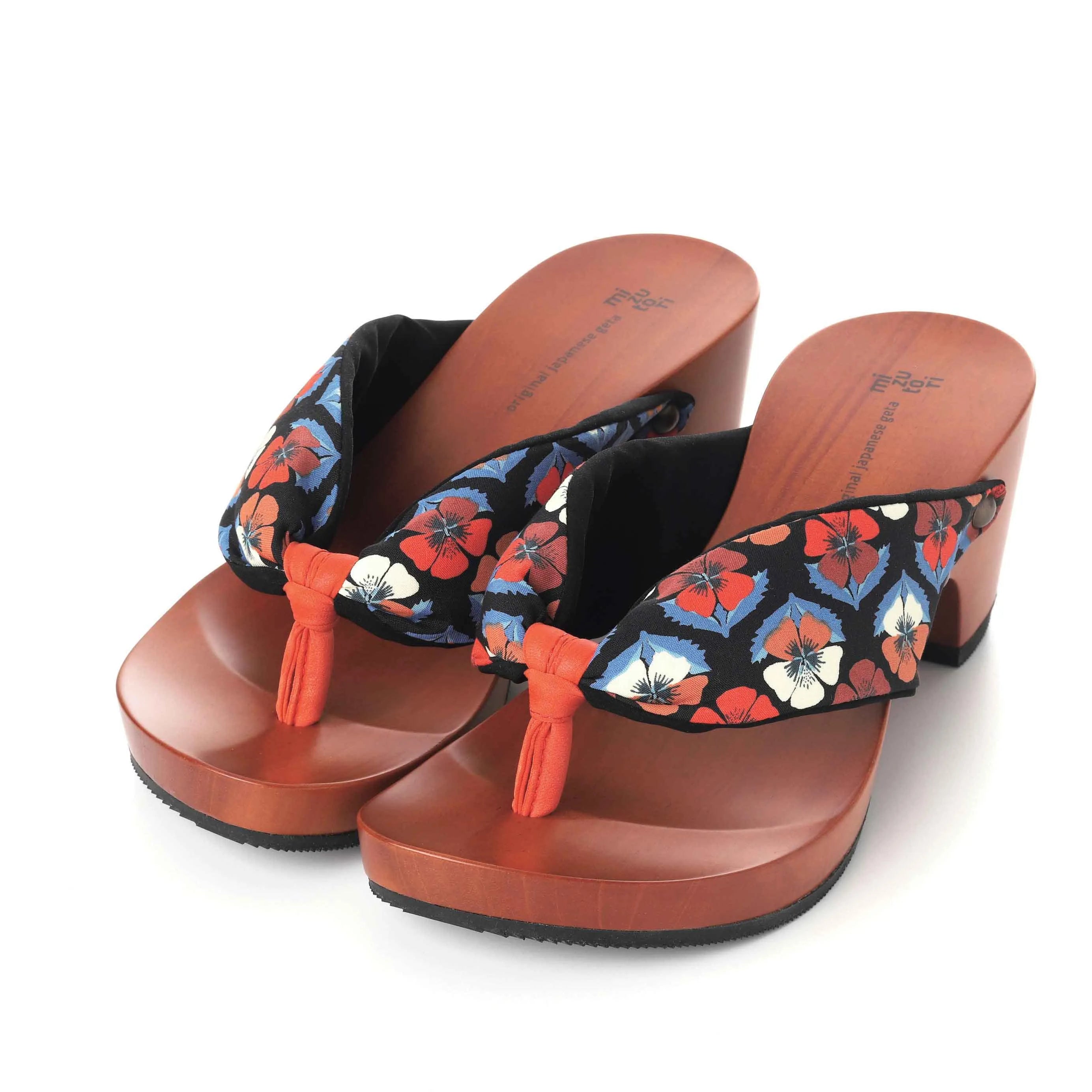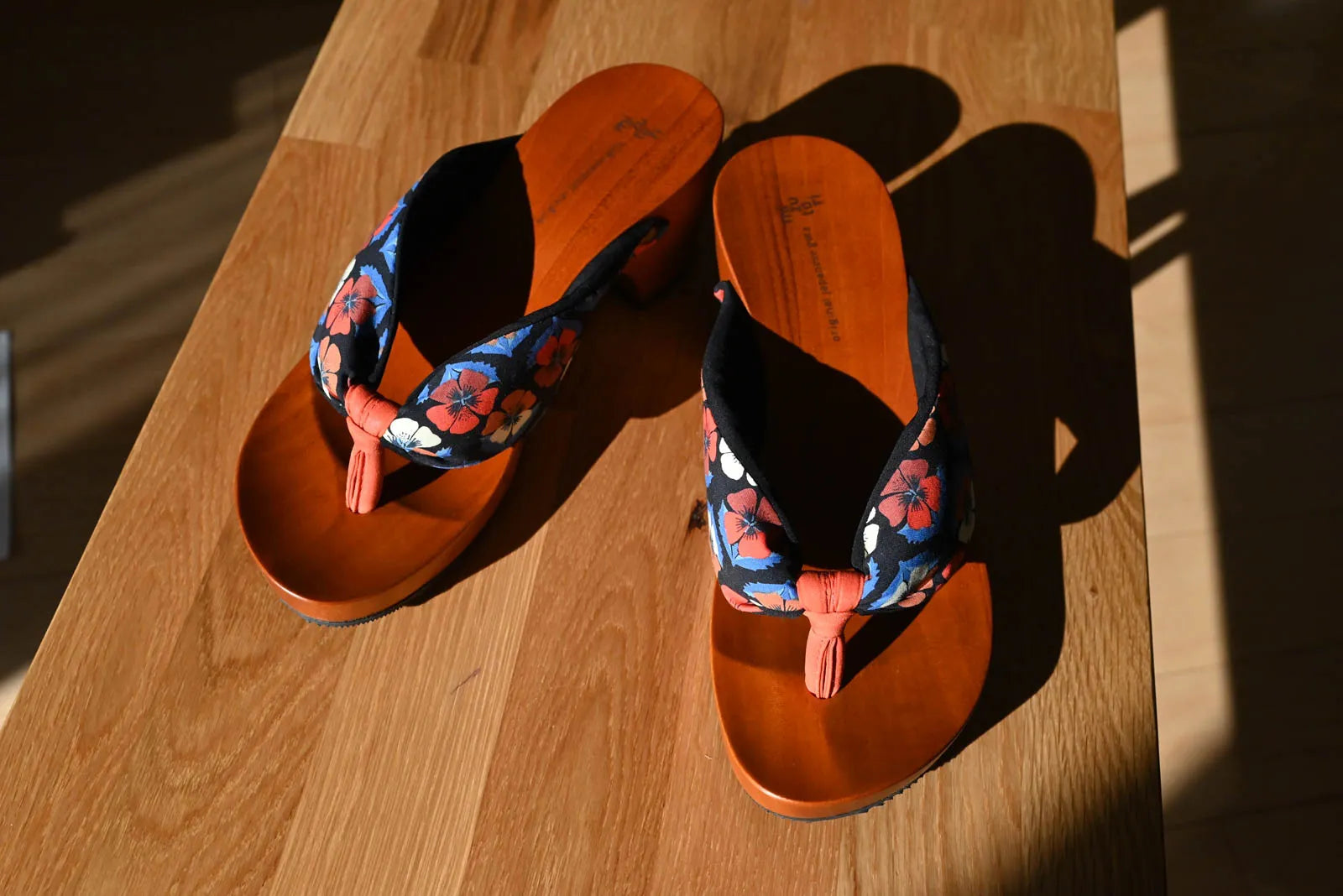 足裏にフィットする様に滑らかに削った木地と、クッション材入りの鼻緒が特徴。