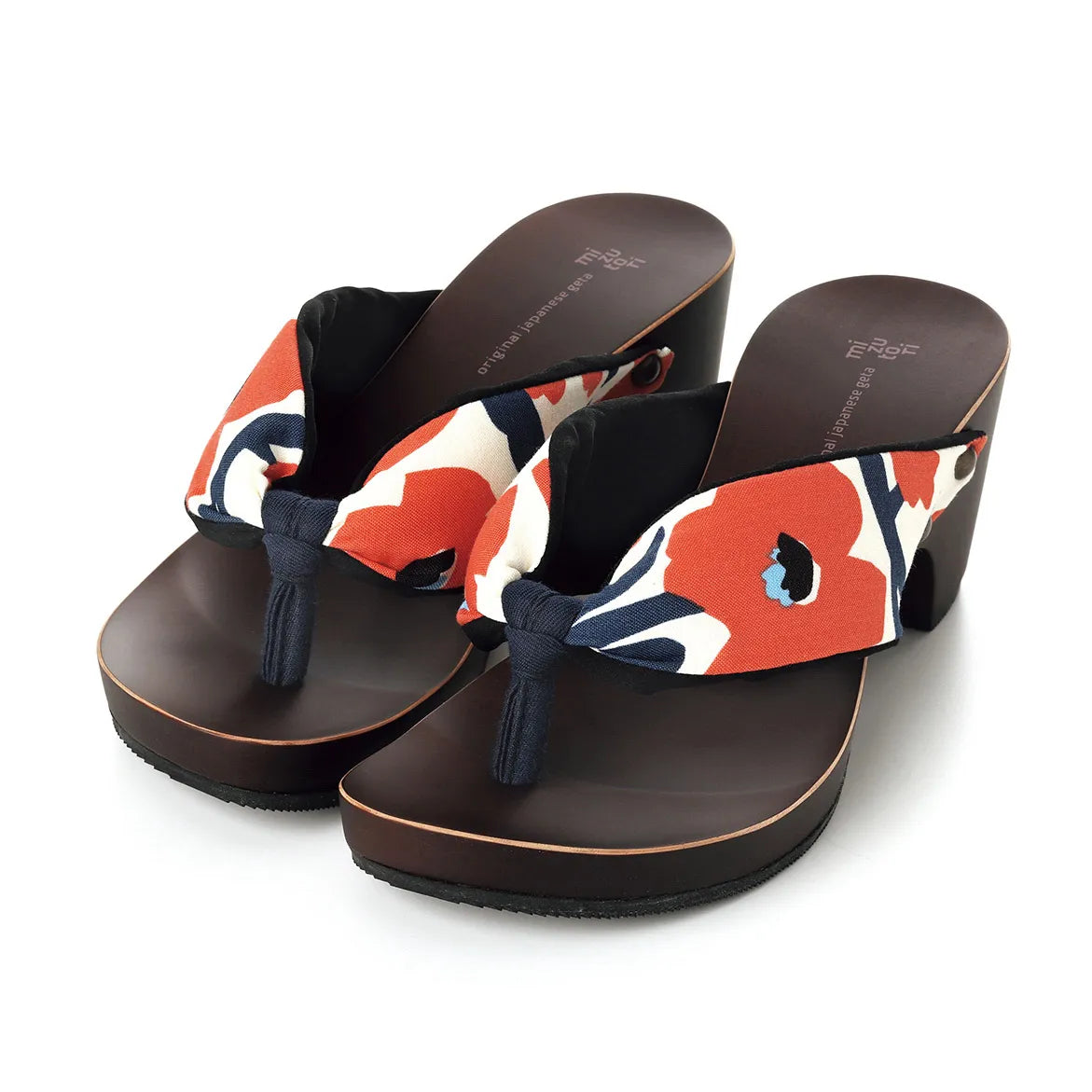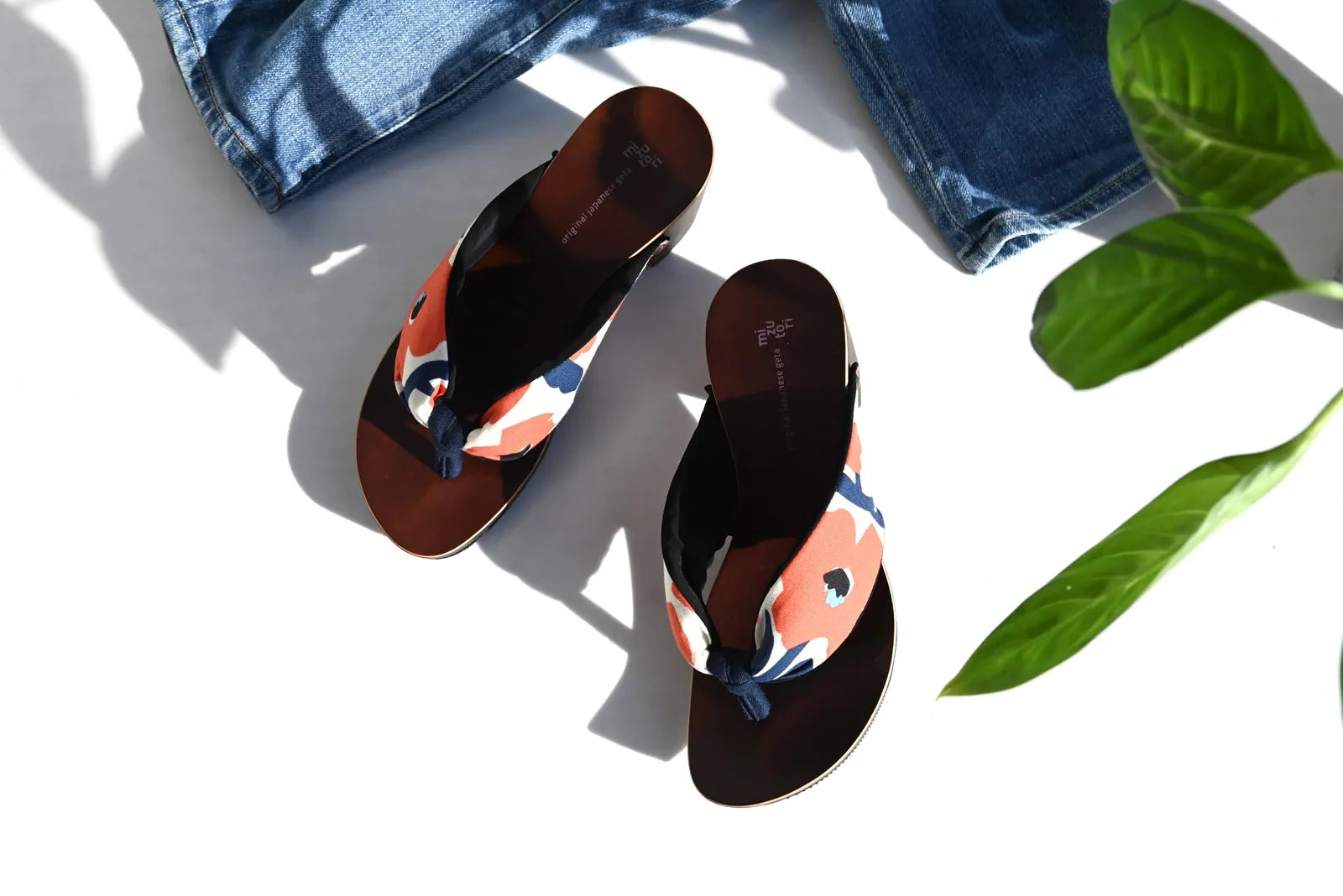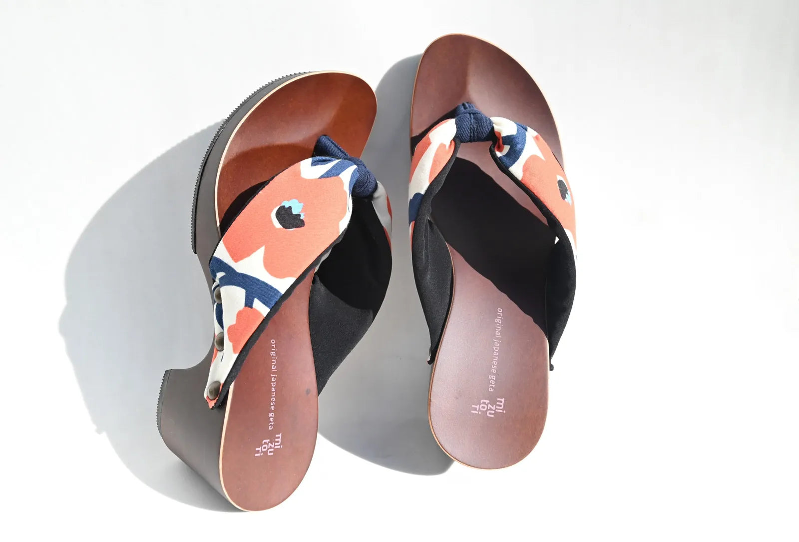 足裏にフィットする様に滑らかに削った木地と、クッション材入りの鼻緒が特徴。