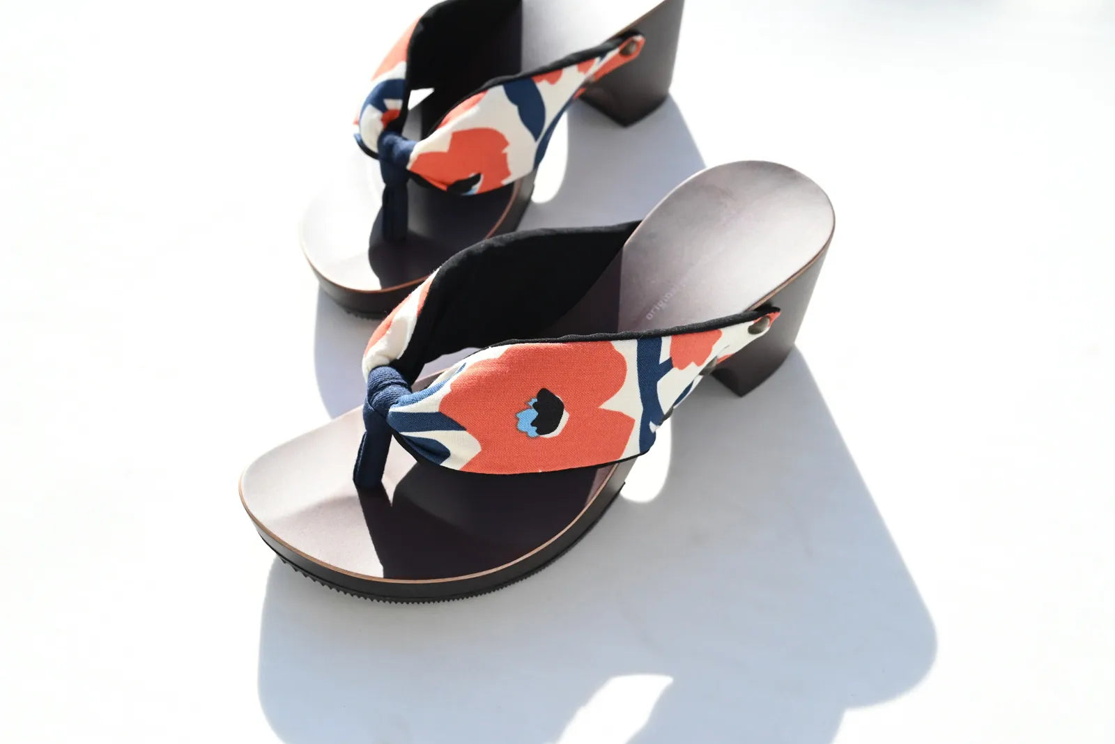 大きな花とくっきりした色使いが印象的な1足です。どこか懐かしさも感じるような雰囲気も魅力です。
