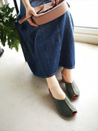 mizutoriの歩きやすいhitete6.5の木地はそのまま、アッパーに本革を使用したサボタイプです。