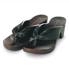 足裏にフィットする様に滑らかに 削った木地と、クッション材入りの鼻緒が特徴。