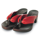 足裏にフィットする様に滑らかに 削った木地と、クッション材入りの鼻緒が特徴。