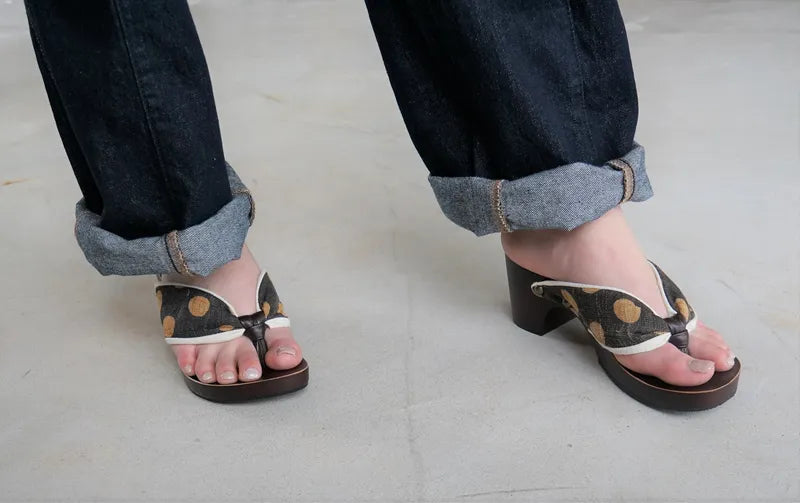 【お取り扱い上のご注意・鼻緒/表生地】 ・静岡特産の茶葉を静岡の伝統工芸「駿河和染」の型染め技術で手作業で染めた染製品になります。 ・天然染料のため、長期間、日光などにあたりますと退色する場合がございます。 ・濃い色のものは、摩擦などで繊維、皮膚に移染する場合がございます。