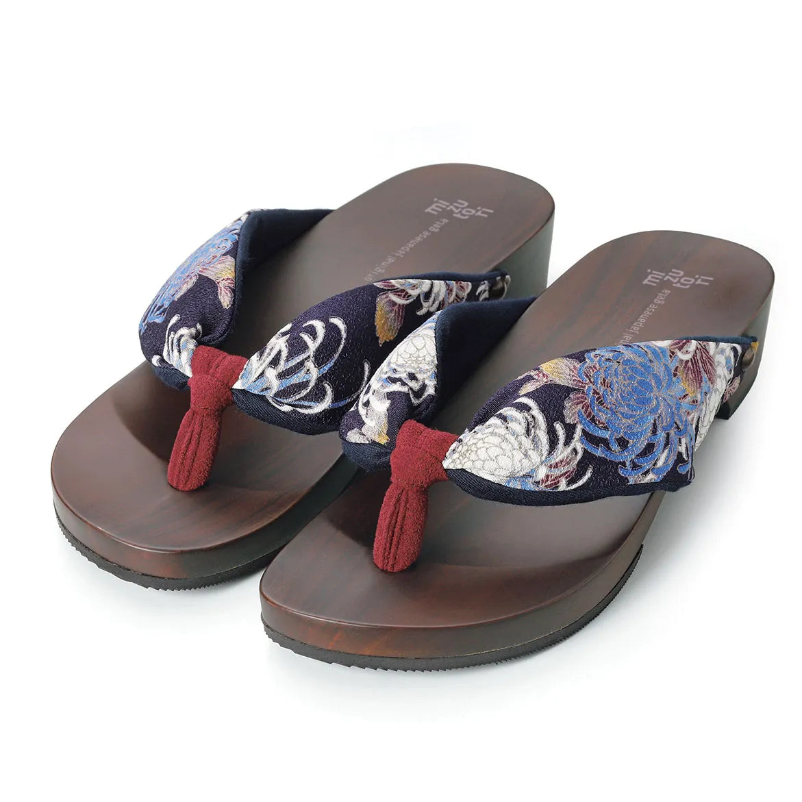 足裏にフィットする様に滑らかに削った木地と、クッション材入りの鼻緒が特徴。