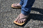 ココア色の本革鼻緒はナチュラルなテイストに合わせやすいです。