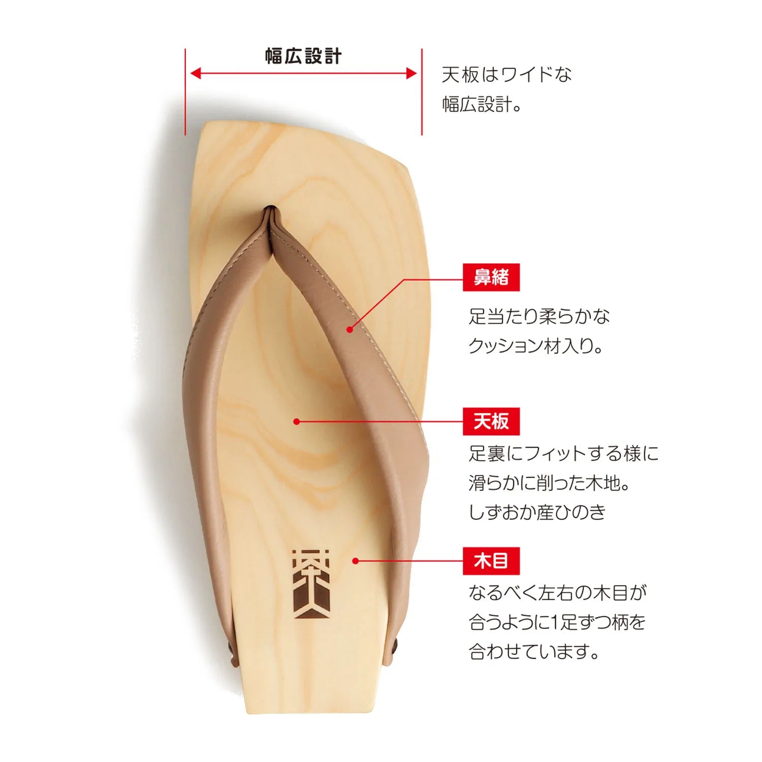 しずおか産ひのきをシンプルでシャープに削り出した、《男のげた》。