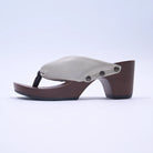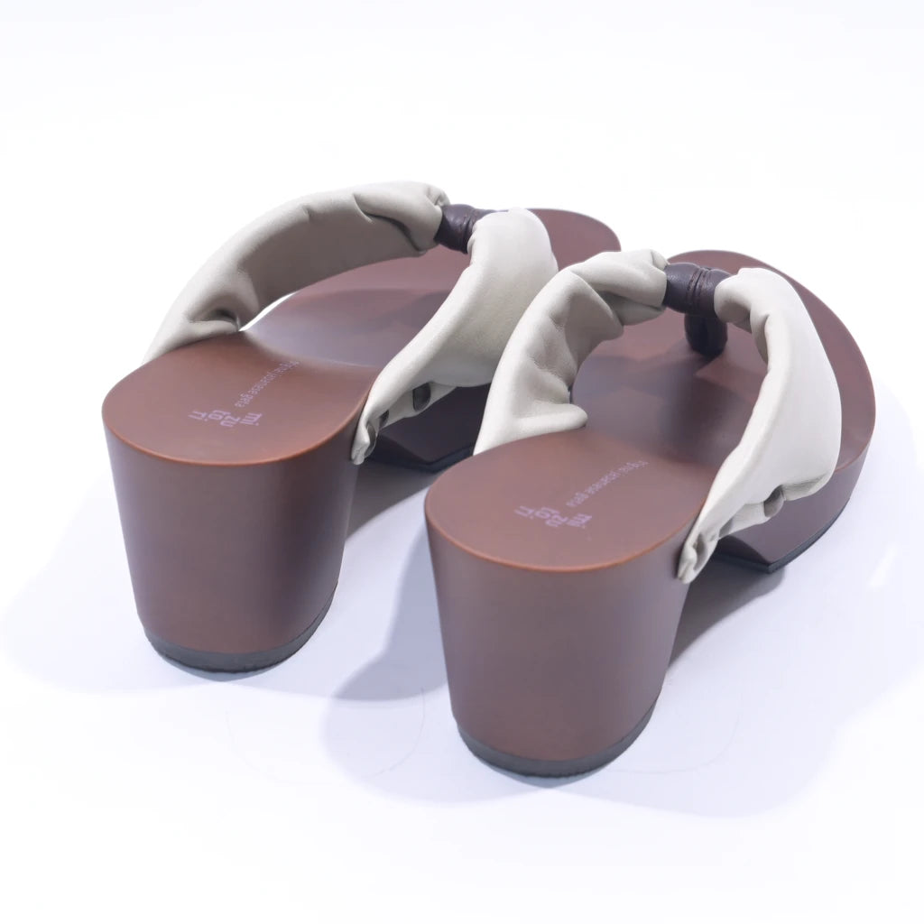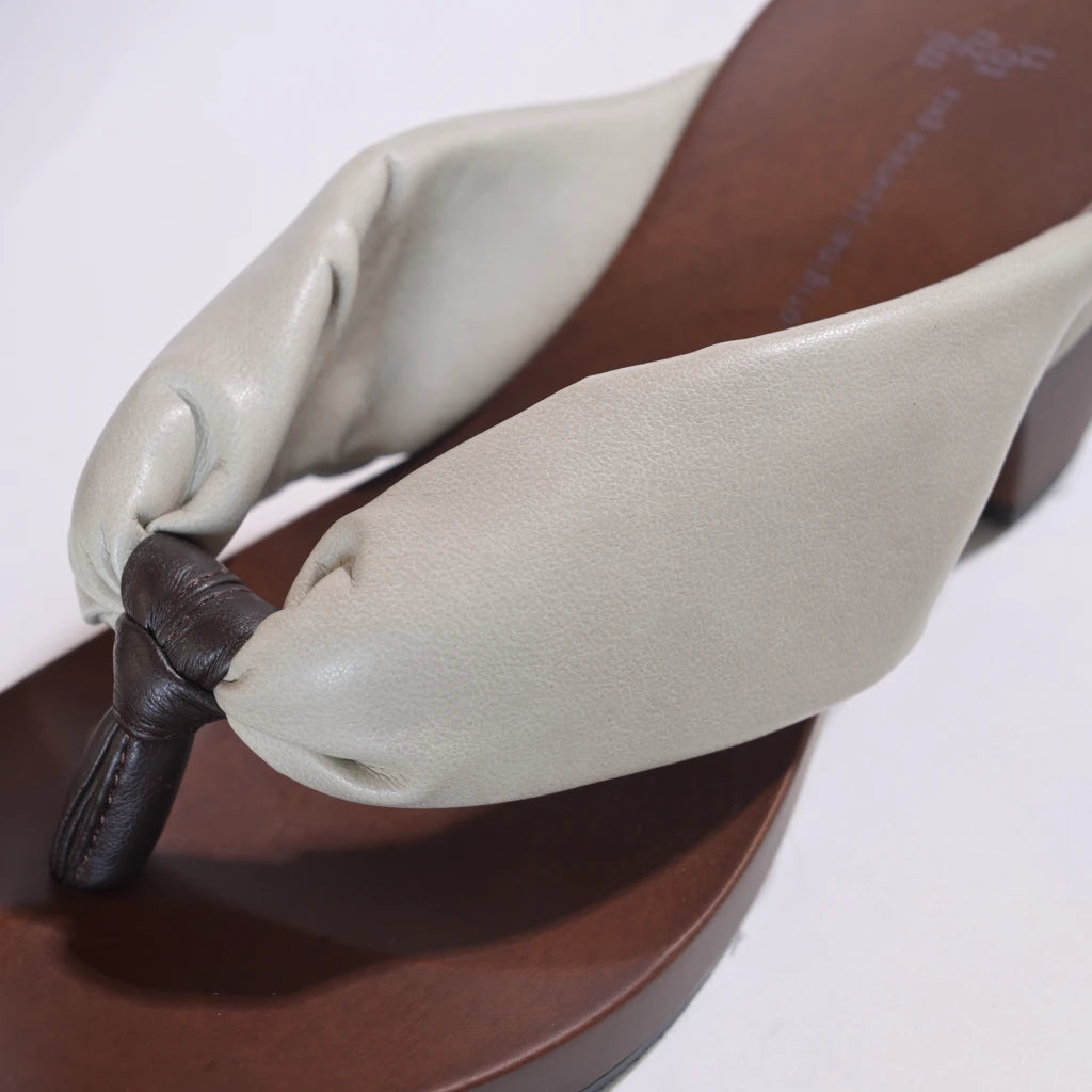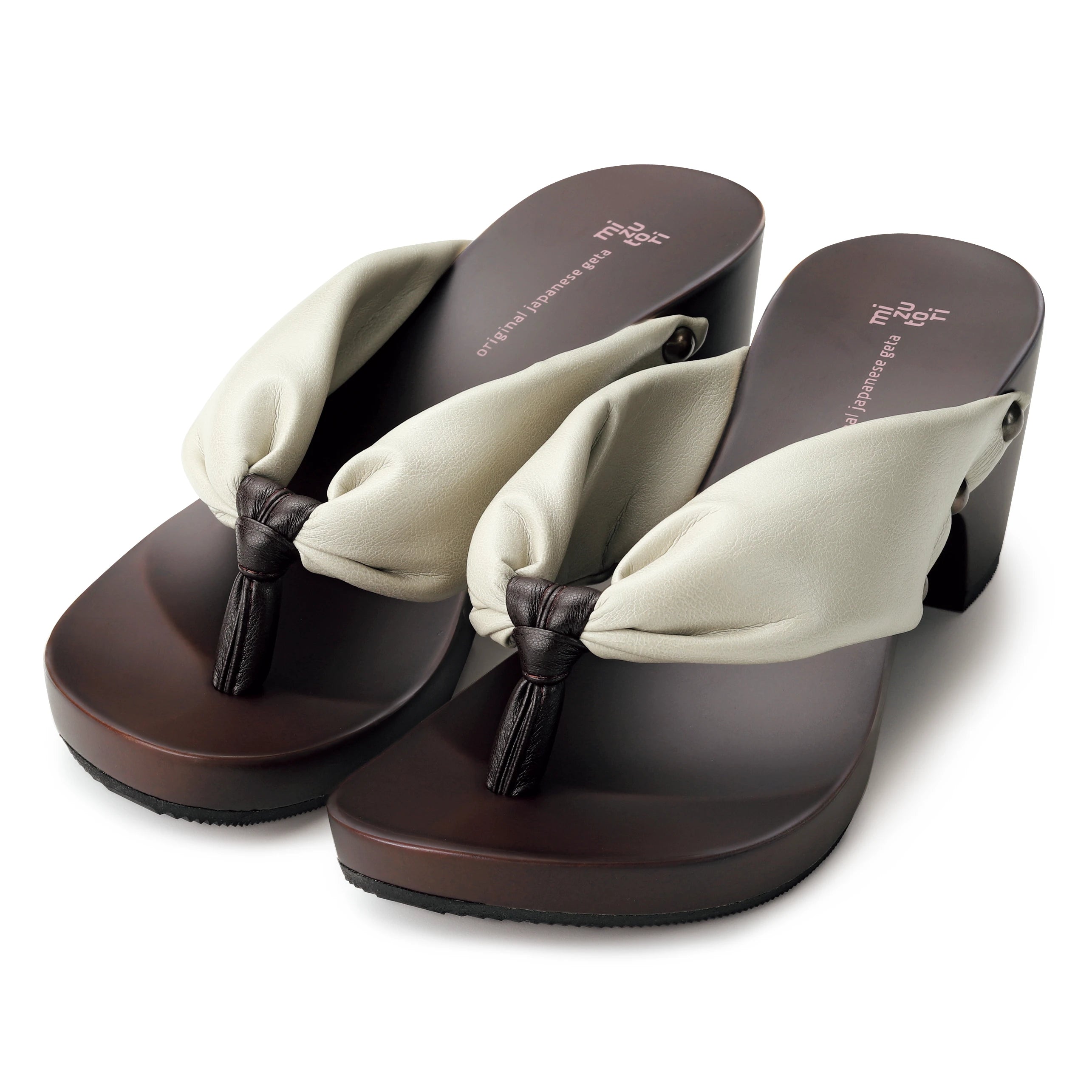 足裏にフィットする様に滑らかに削った木地と、クッション材入りの鼻緒が特徴。