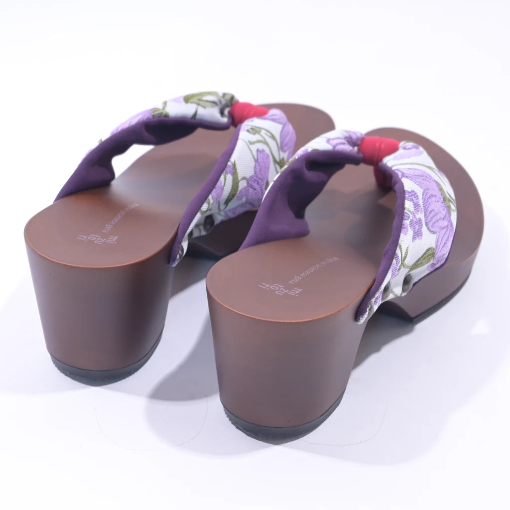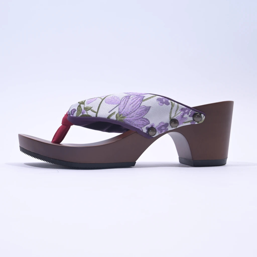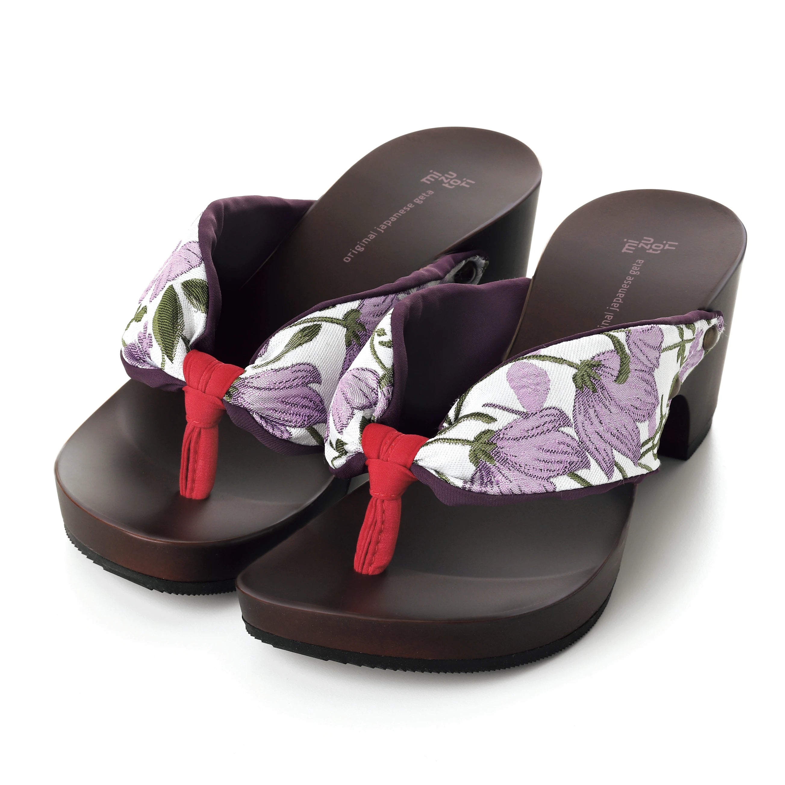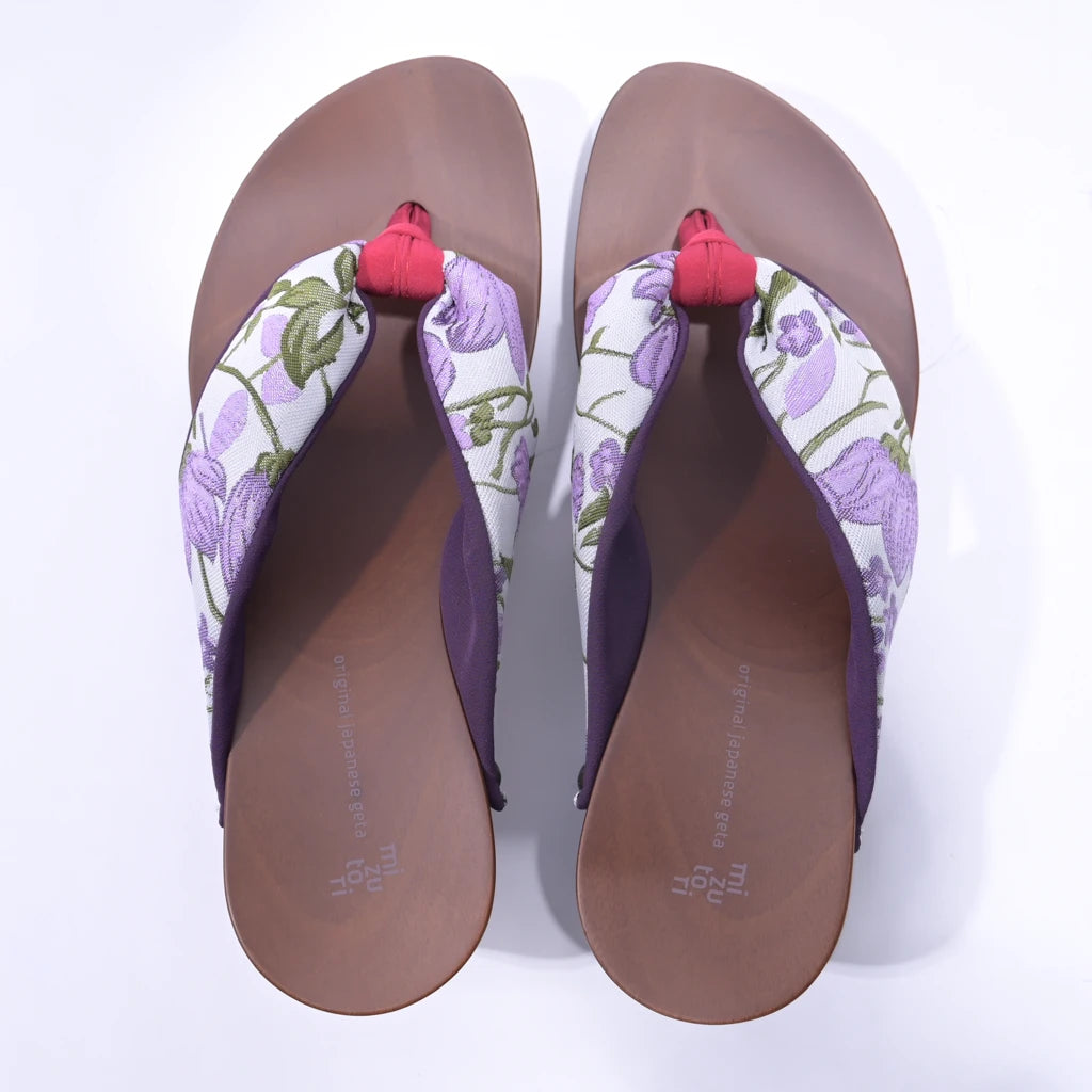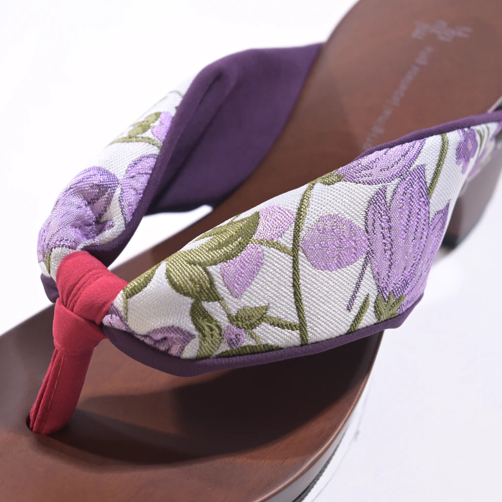 足裏にフィットする様に滑らかに削った木地と、クッション材入りの鼻緒が特徴。