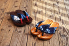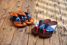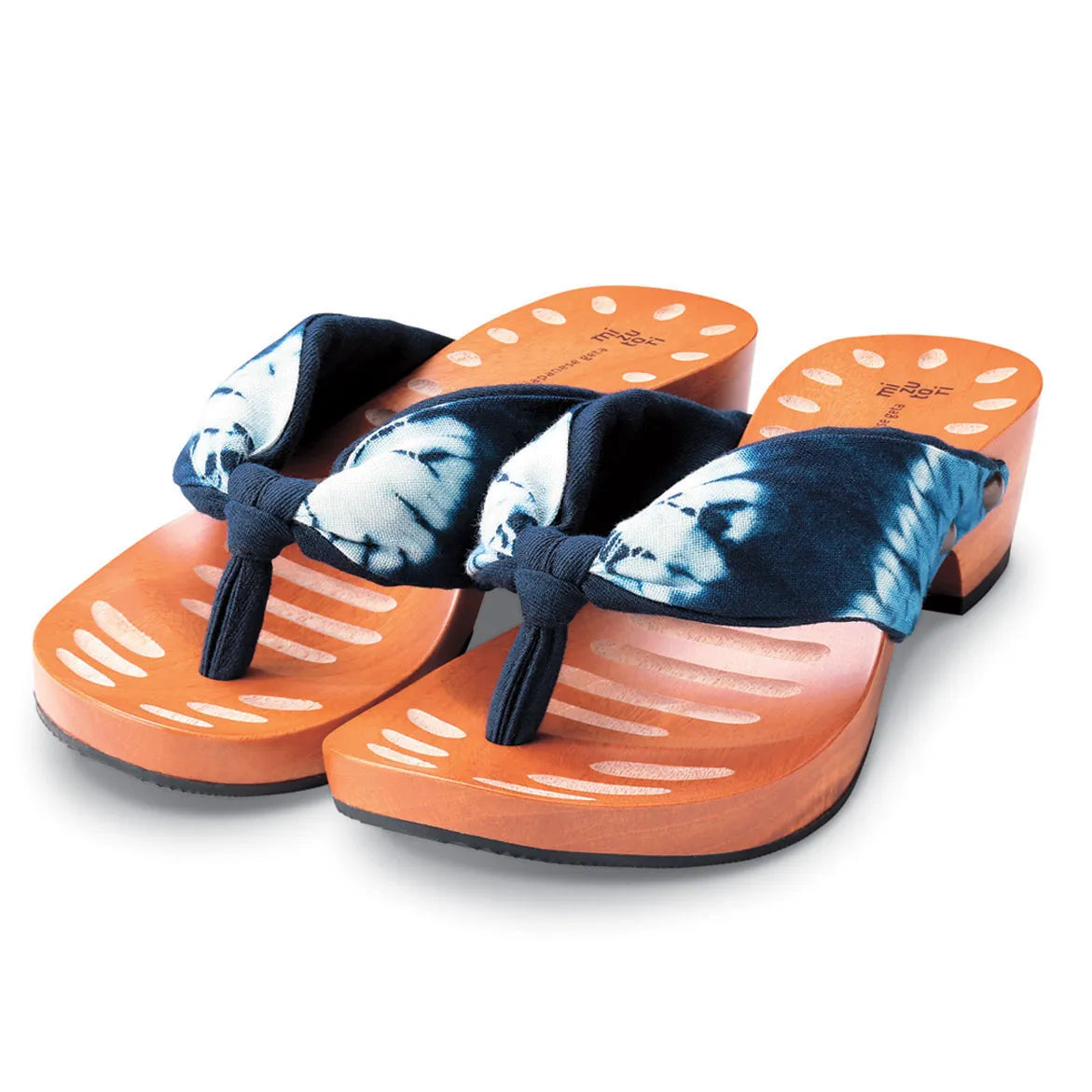 They feature smoothly carved wood to fit the soles of the feet and cushioned thongs.