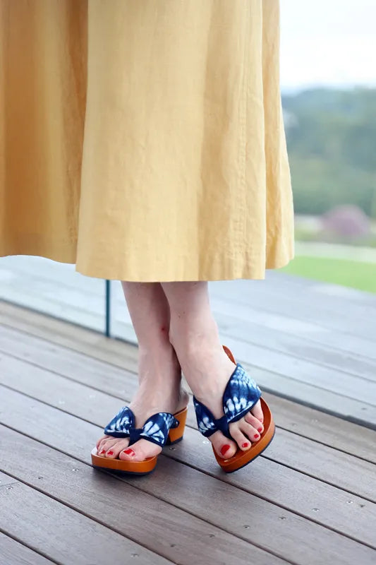 The tie-dyed indigo dye goes well with both yukata and denim pants.