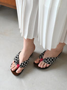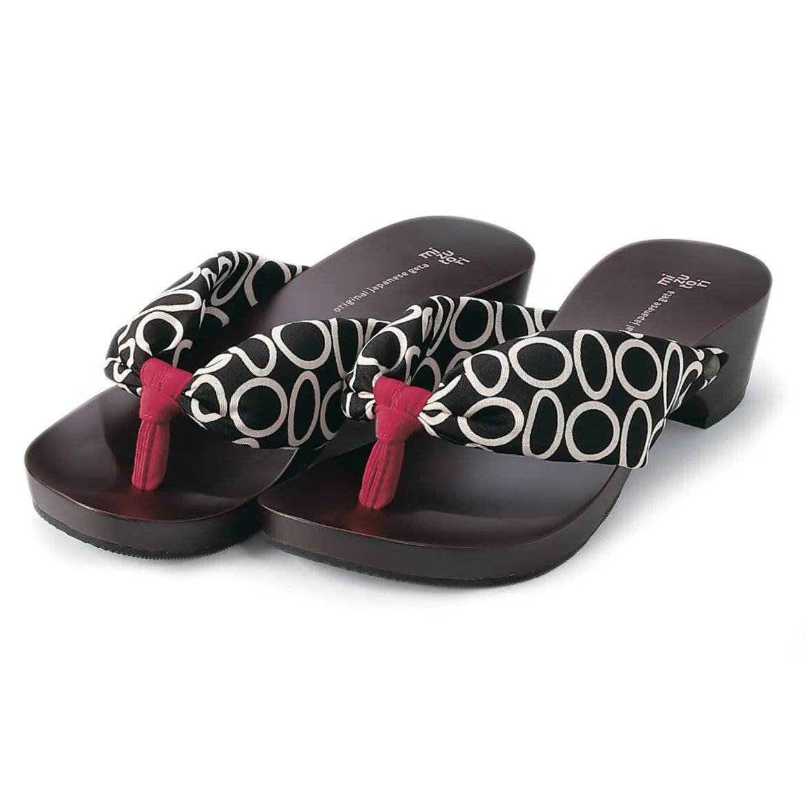 The cushioning material makes it soft on the feet. The wide width of the cushioning material wraps the feet securely. The cushioning material is designed to fit the average Japanese foot shape.