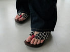 The cushioning material makes it soft on the feet. The straps are designed to stay in place.