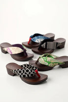 They feature smoothly carved wood to fit the soles of the feet and cushioned thongs.