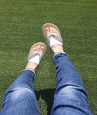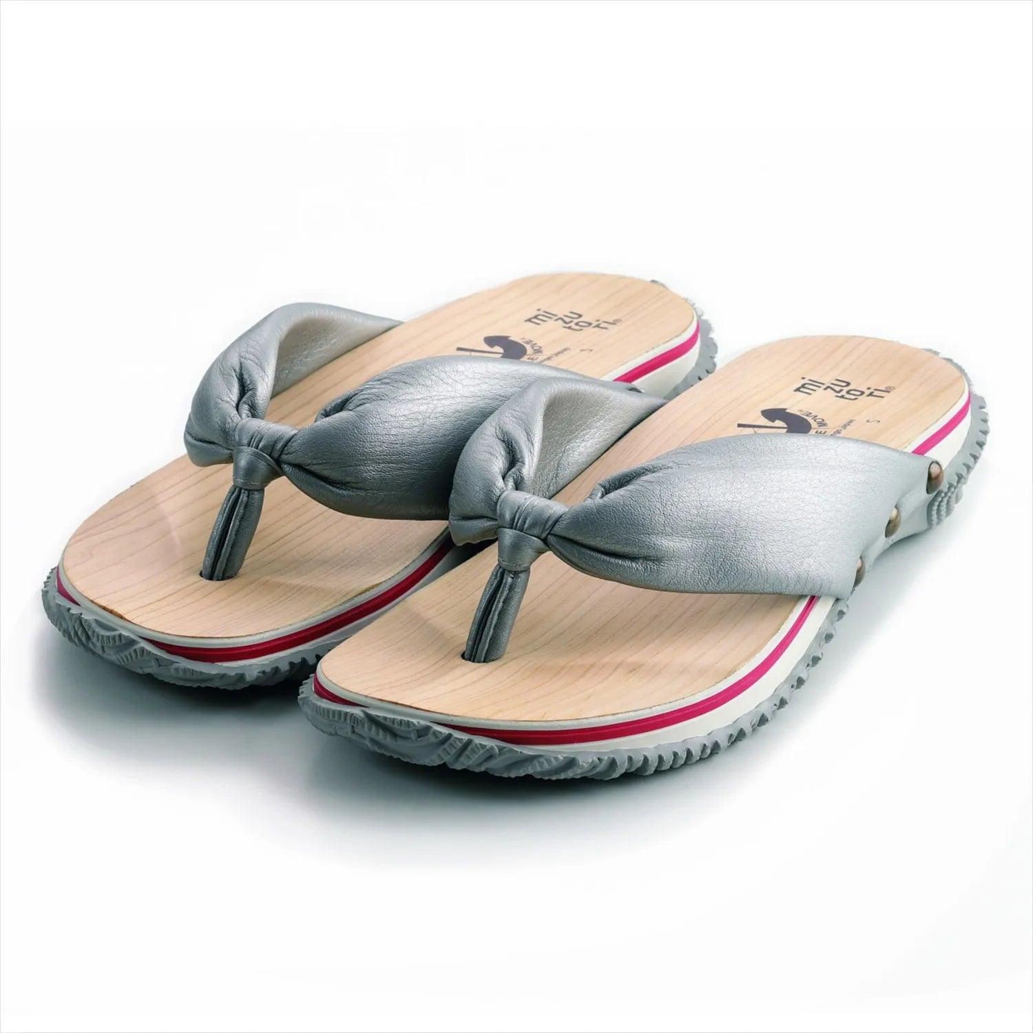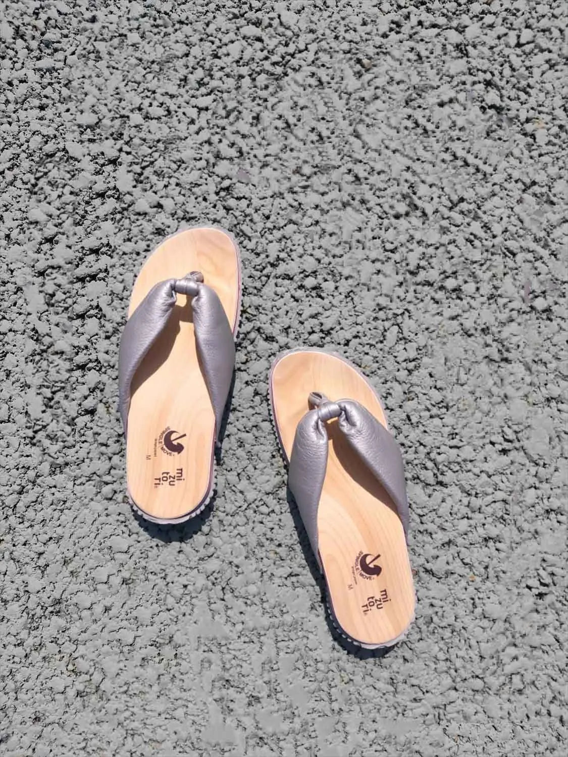 Rolled-up sole geta, genuine leather, silver / NTSP-02