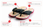 While maintaining the comfort of traditional Mizutori geta, the combination of the rolled up sole creates a new functional beauty. The geta, made by the careful handiwork of both brands, are easy to use even for those who are not familiar with geta.