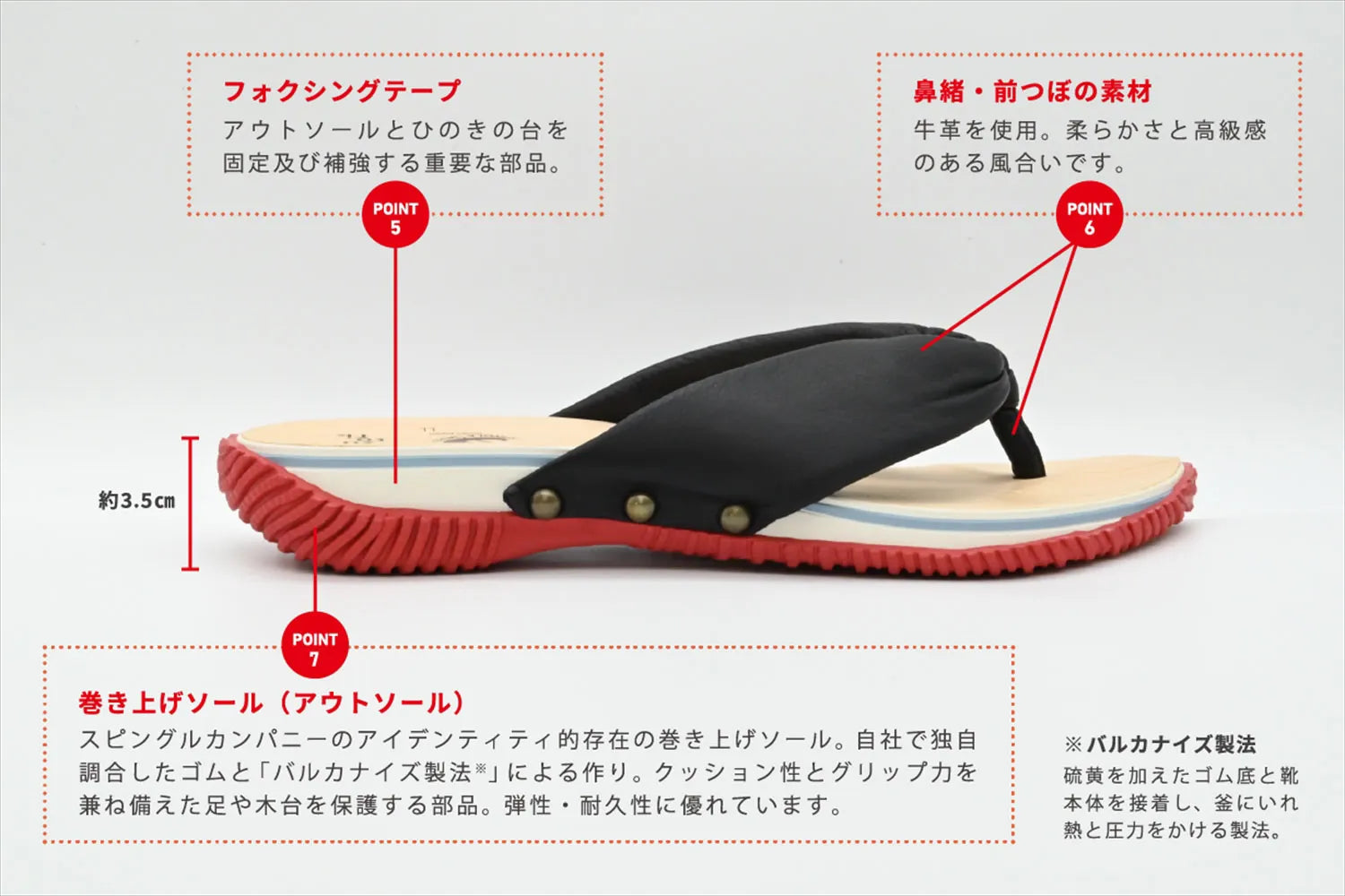 By combining Mizutori's Shizuoka-produced hinoki geta sandals with Spingle Company's iconic "rolled-up sole" design, we aimed to create a new type of geta sandal that is innovative yet blends into everyday life.