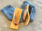 Front part: Polyester Wood: Shizuoka Hinoki Midsole: EVA