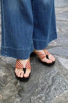 They feature smoothly carved wood to fit the soles of the feet and cushioned thongs.