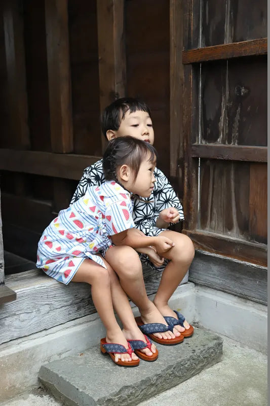 お子様が好きな色柄の鼻緒は普段のお洋服にも合わせやすく可愛いらしい足を優しく包みます。
