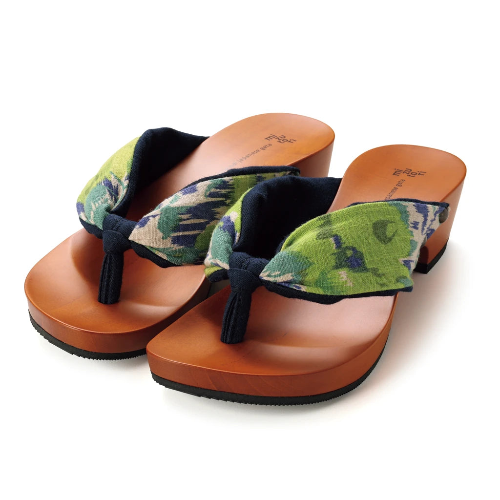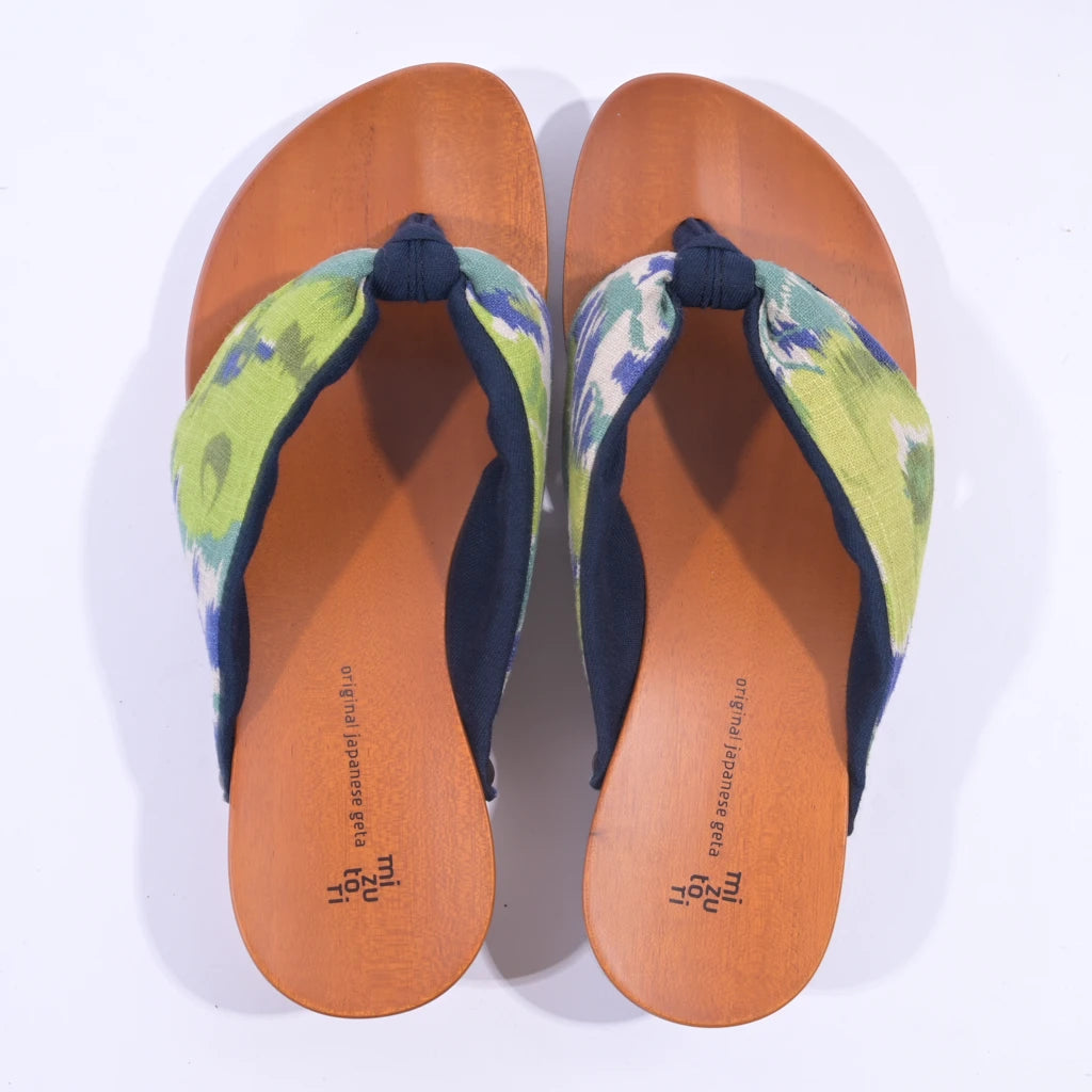 瑞々しいライムイエローの花柄と綿麻のシャリ感が、いつもの装いをパッと明るく軽やかに。浴衣にも洋服にも映える、夏にぴったりの軽快な足元を演出してくれます。