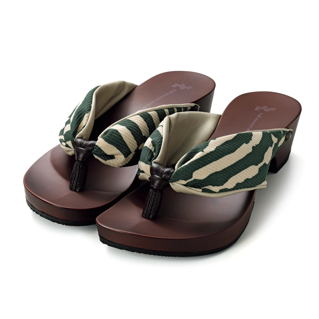 風渡る高原を思わせる緑のストライプが、夏のお洒落に清涼感をプラス。立体的な織り柄が、洗練された大人の和モダンを演出します。