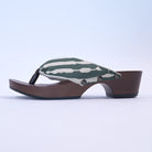 足裏にフィットする様に滑らかに 削った木地と、クッション材入りの鼻緒が特徴。