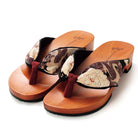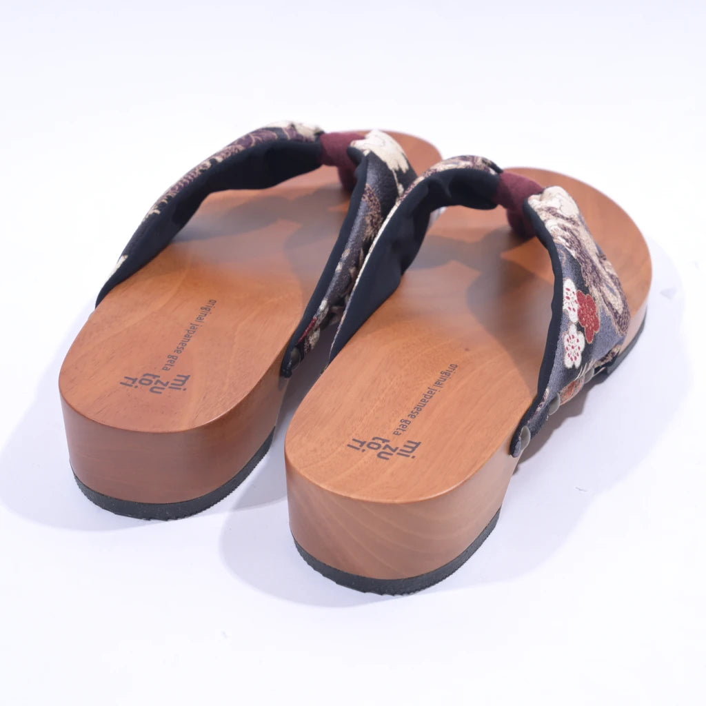 足裏にフィットする様に滑らかに削った木地と、クッション材入りの鼻緒が特徴。